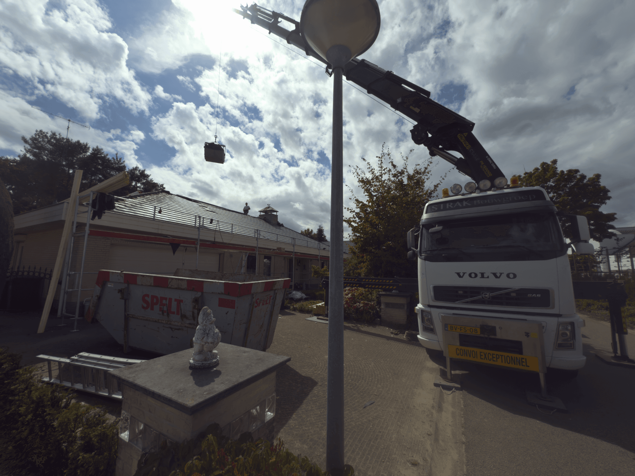 Dankzij onze eigen kraanwagen konden de materialen efficiënt en veilig het dak op. Zo besparen we tijd, voorkomen we schade, en blijft het hele proces overzichtelijk.